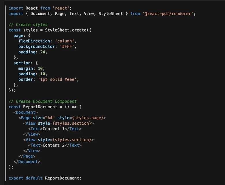 React PDF Renderer provides several key components for building documents. Understanding these helps you design layouts confidently.